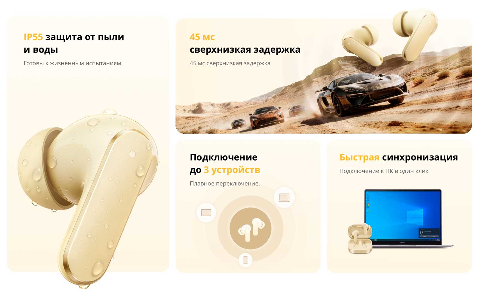 Персонализированное спокойствие для каждого. realme Buds Air8 в режиме реального времени изучает форму вашего слухового канала, учитывают при этом свою посадку в ушной раковине, и оптимизирует шумоподавление и подавление