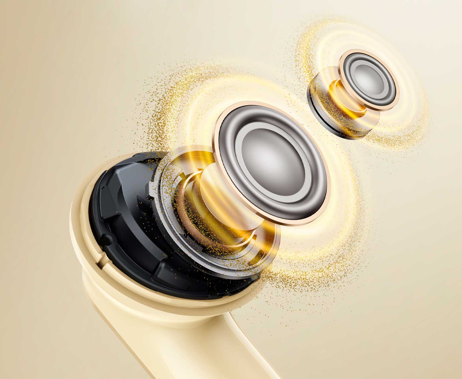 Погружение в звук, как на живом выступлении. Технология HRTF и пространственный аудиоалгоритм обеспечивают разнонаправленную передачу звука для создания иммерсивного стереозвука. Благодаря динамической настройке мелодий вы можете