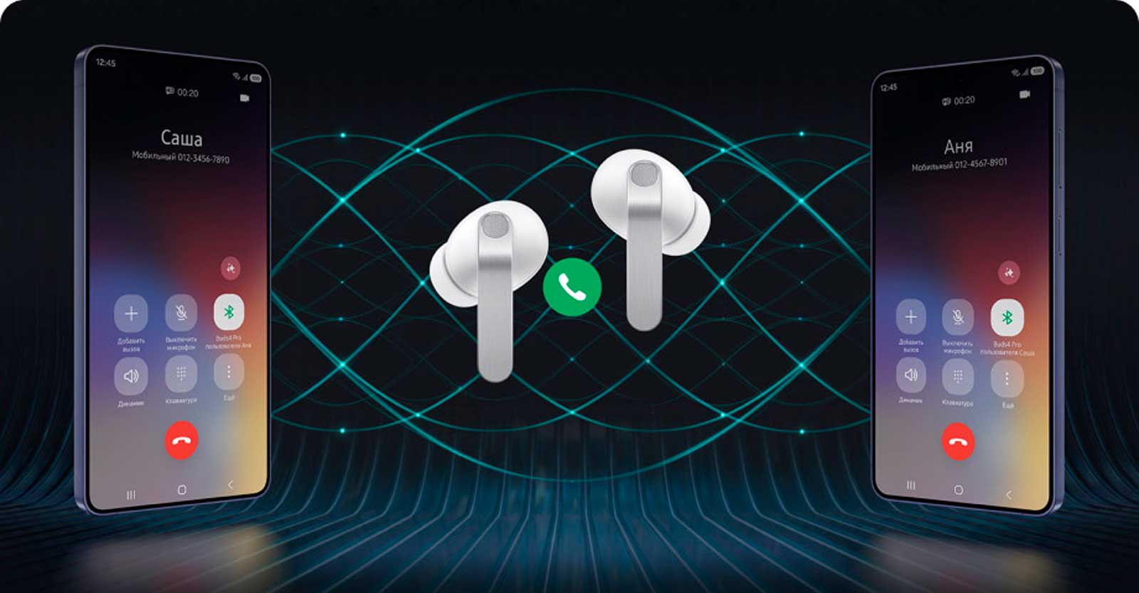 Система из трёх микрофонов и датчика костной проводимости (VPU) точно отделяет голос от фонового шума. Алгоритмы машинного обучения дополнительно очищают сигнал, поэтому речь остаётся разборчивой даже на улице, при ветре или в