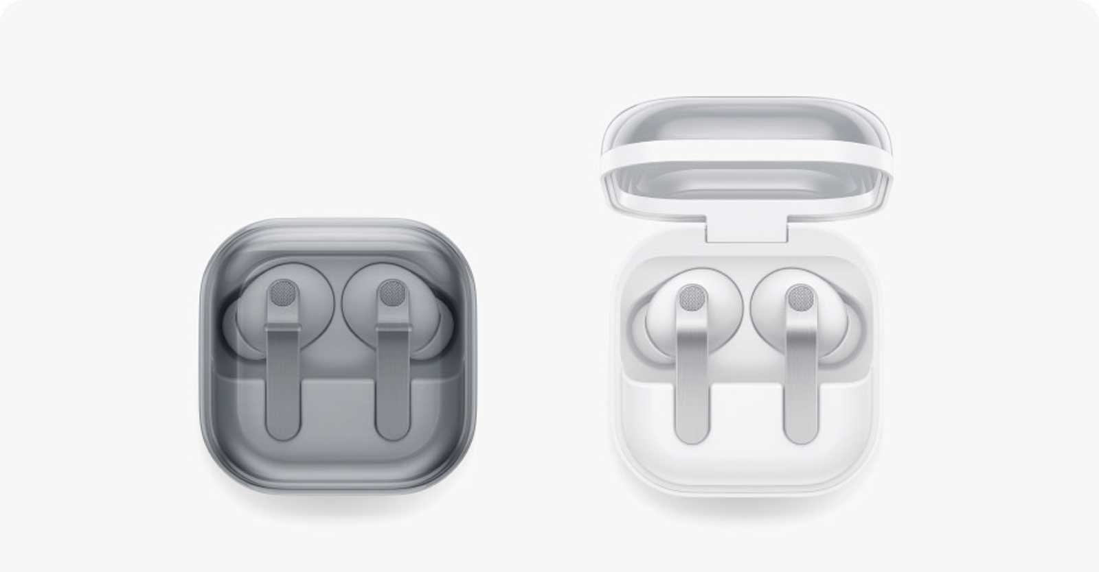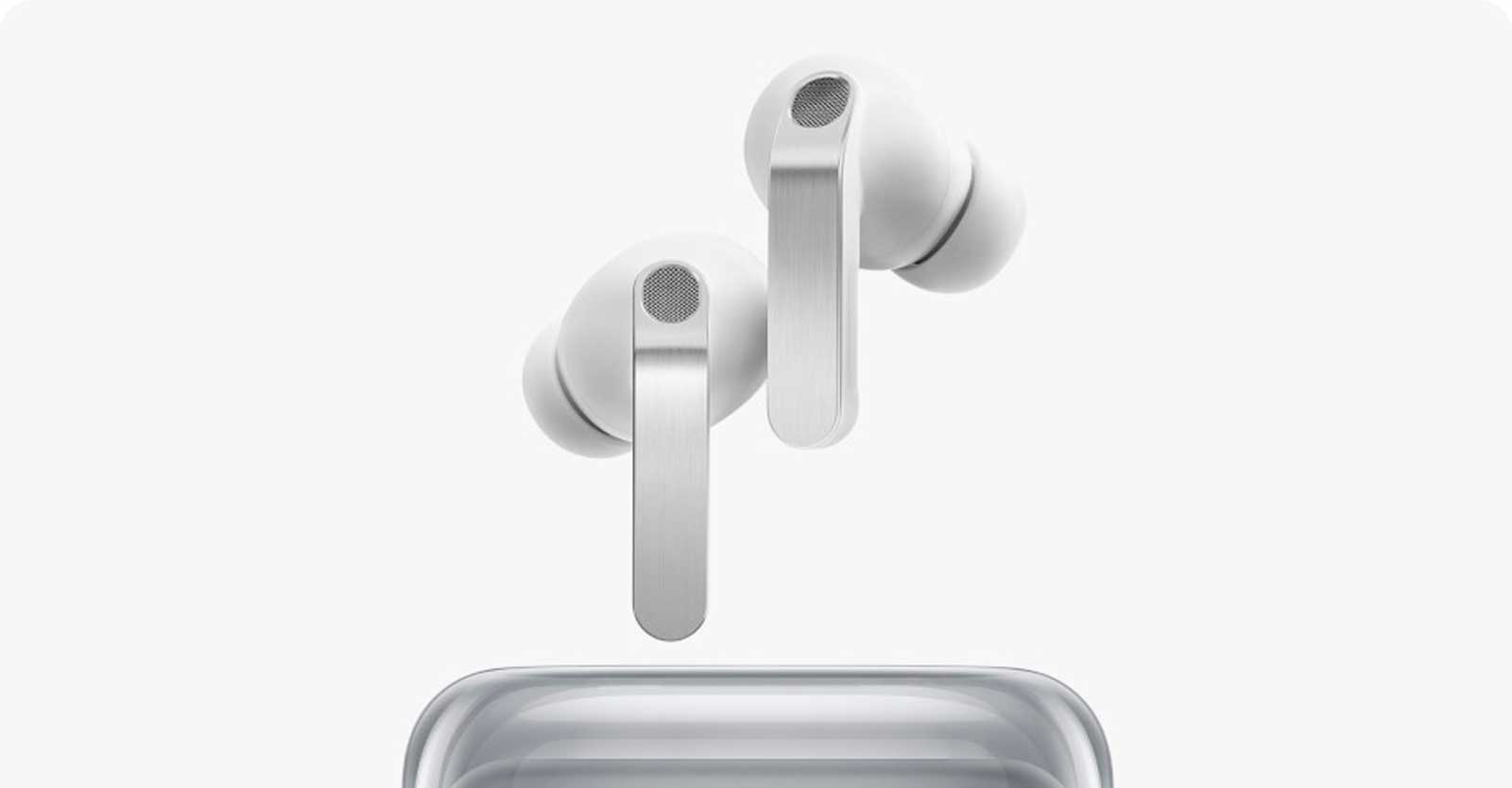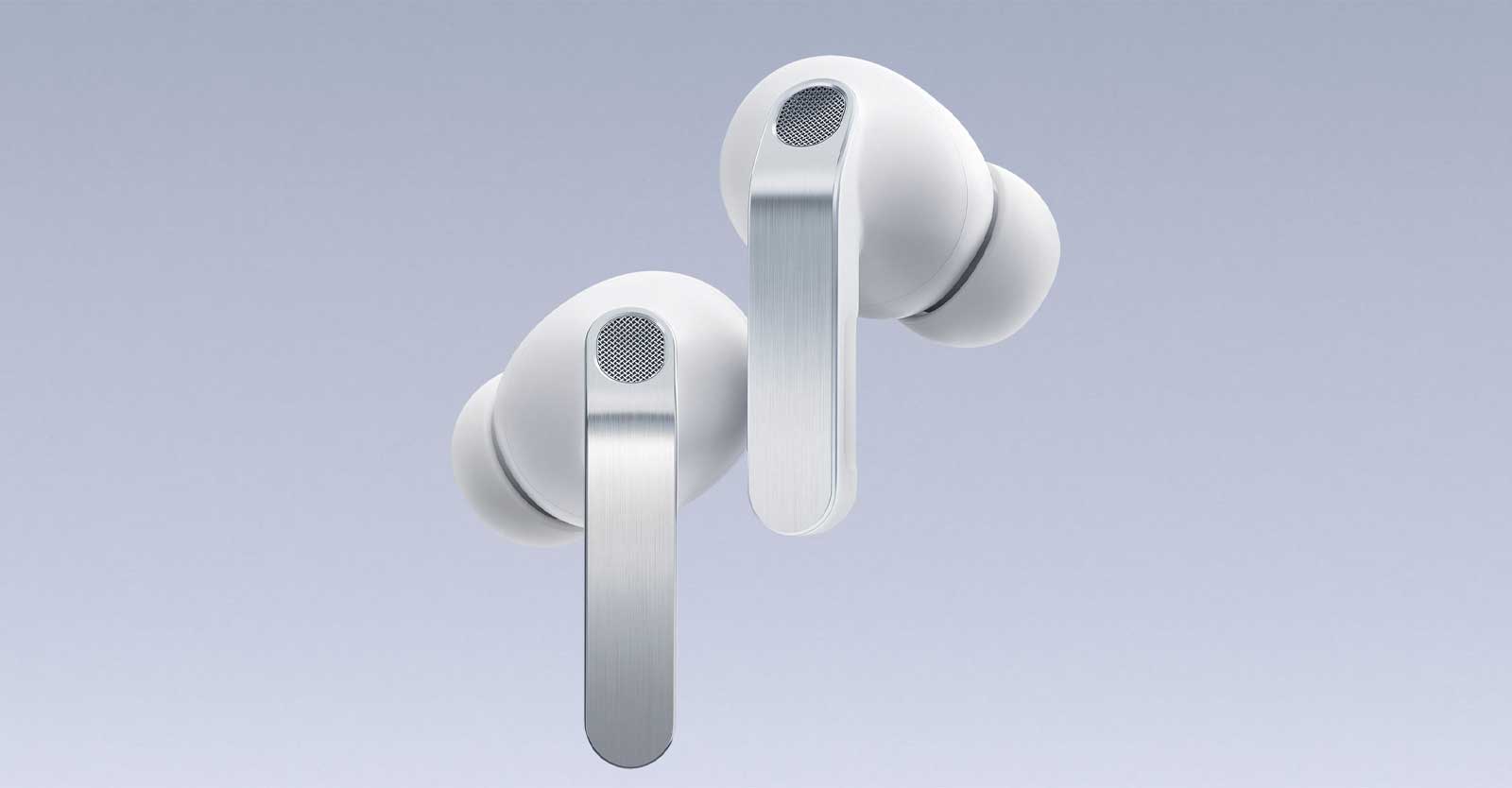 Металлические элементы, тонкие скошенные грани и сенсорная панель с углублением делают Buds4 Pro визуально строгими и функциональными. Управление жестами становится точнее, а сами наушники комфортны даже при длительном ношении.