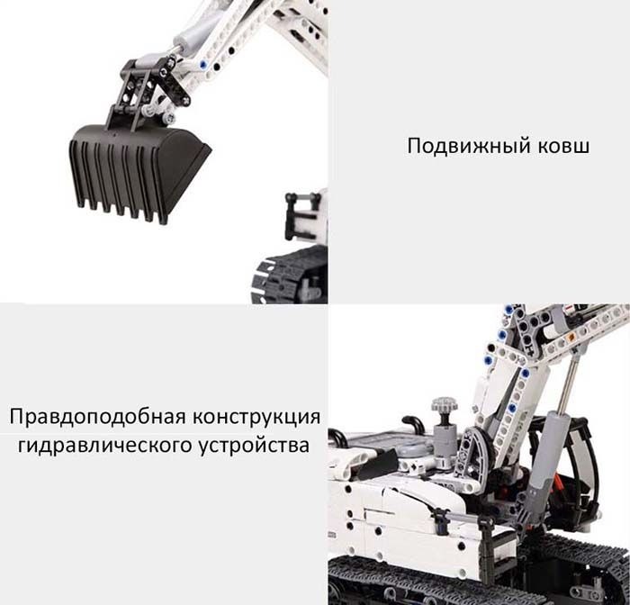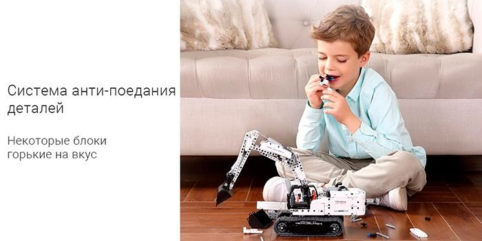 Безопасные материалыВсе детали конструктора экскаватора Xiaomi Mitu Engineering Excavator изготовлены из безопасных материалов и идеально подогнаны друг к другу. Высокоточные детали легко соединяются и фиксируются между собой благодаря производству методом литья под давлением в высокоточные формы с погрешностью всего лишь до 0.005 мм.Все движения производятся вручную, вращением маховиков. Один из которых, отвечающий за поворот платформы, находится сверху на её поверхности, а второй, с помощью которого движутся элементы "руки", находится сзади экскаватора, в торце противовеса.