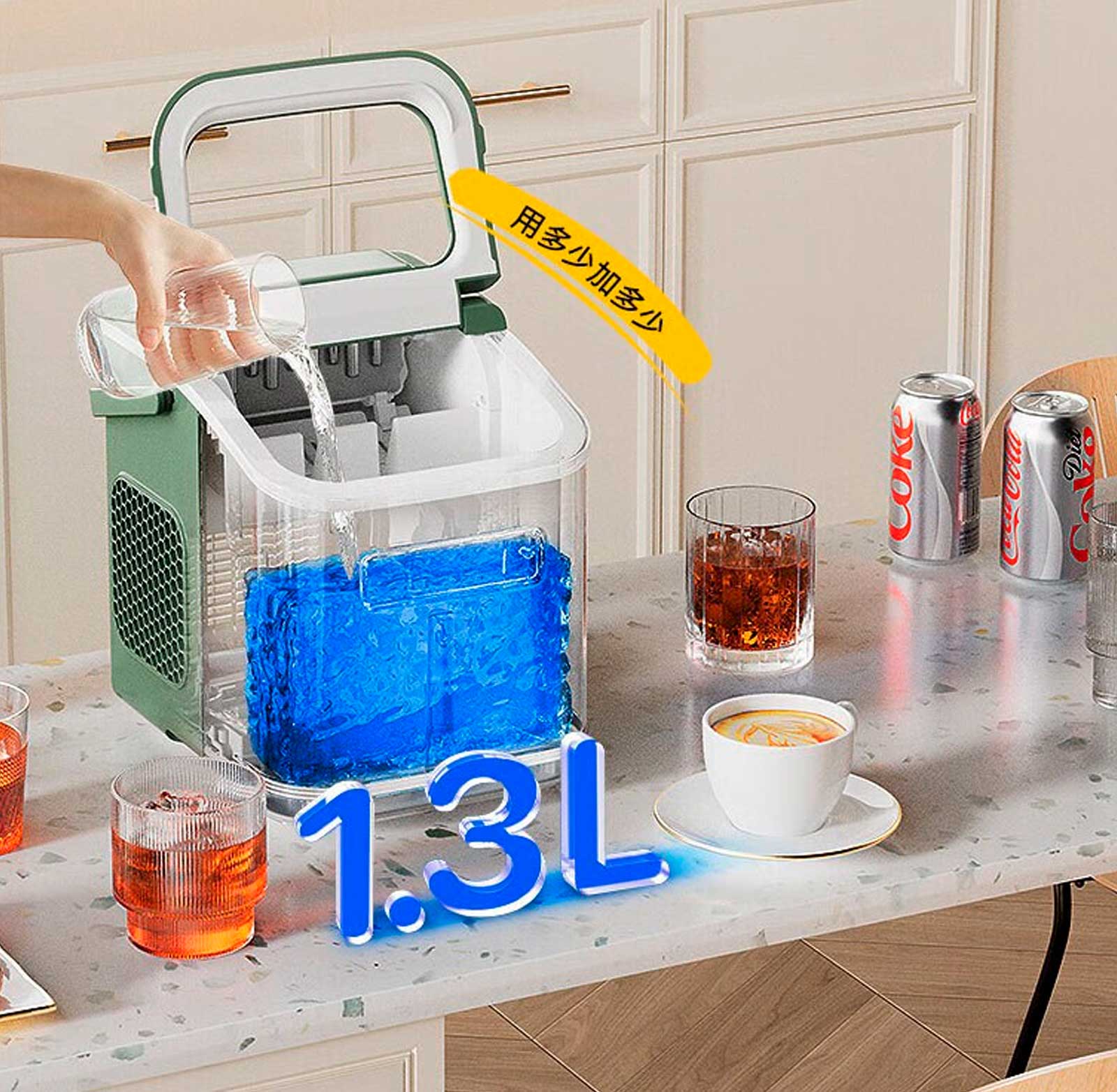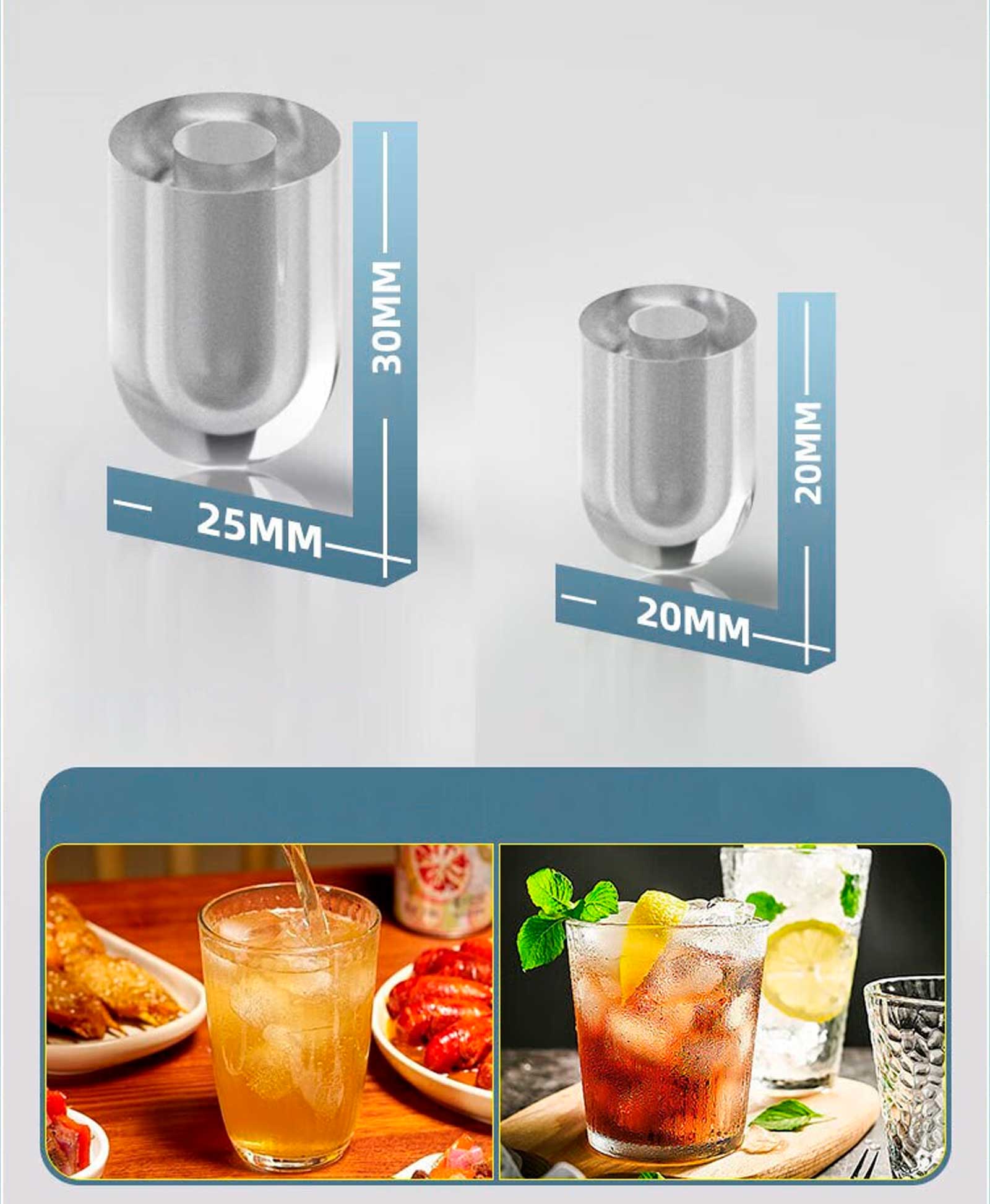 Небольшие кубики (около 20 мм) идеальны для смузи, соков и холодного чая, обеспечивая быстрое охлаждение. Наслаждайтесь персонализированным подходом к приготовлению льда для любого случая!
