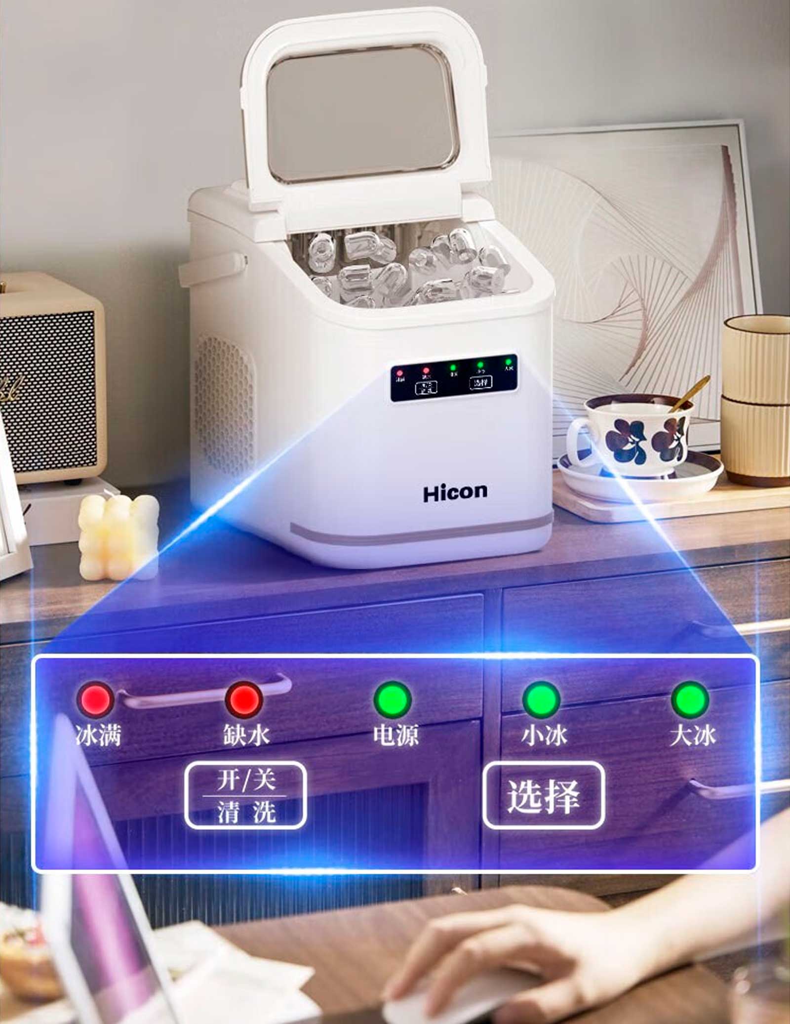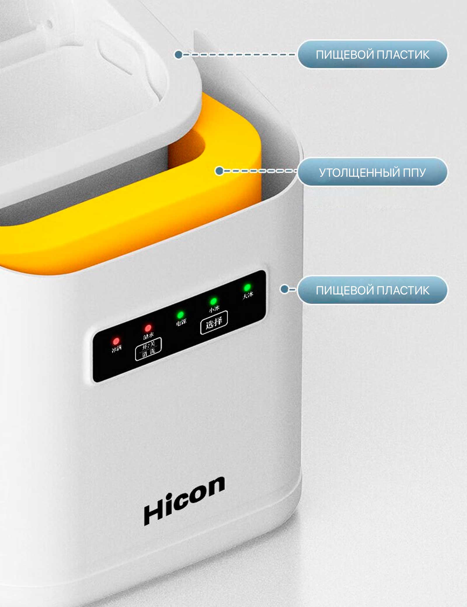 ключевые статусы: «лед готов», «недостаток воды», «питание» и другие. Льдогенератор Hicon сочетает простоту использования с многофункциональностью — идеальное решение для дома и офиса!