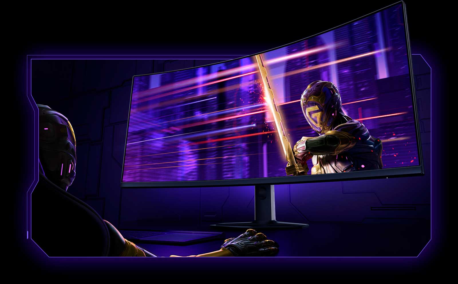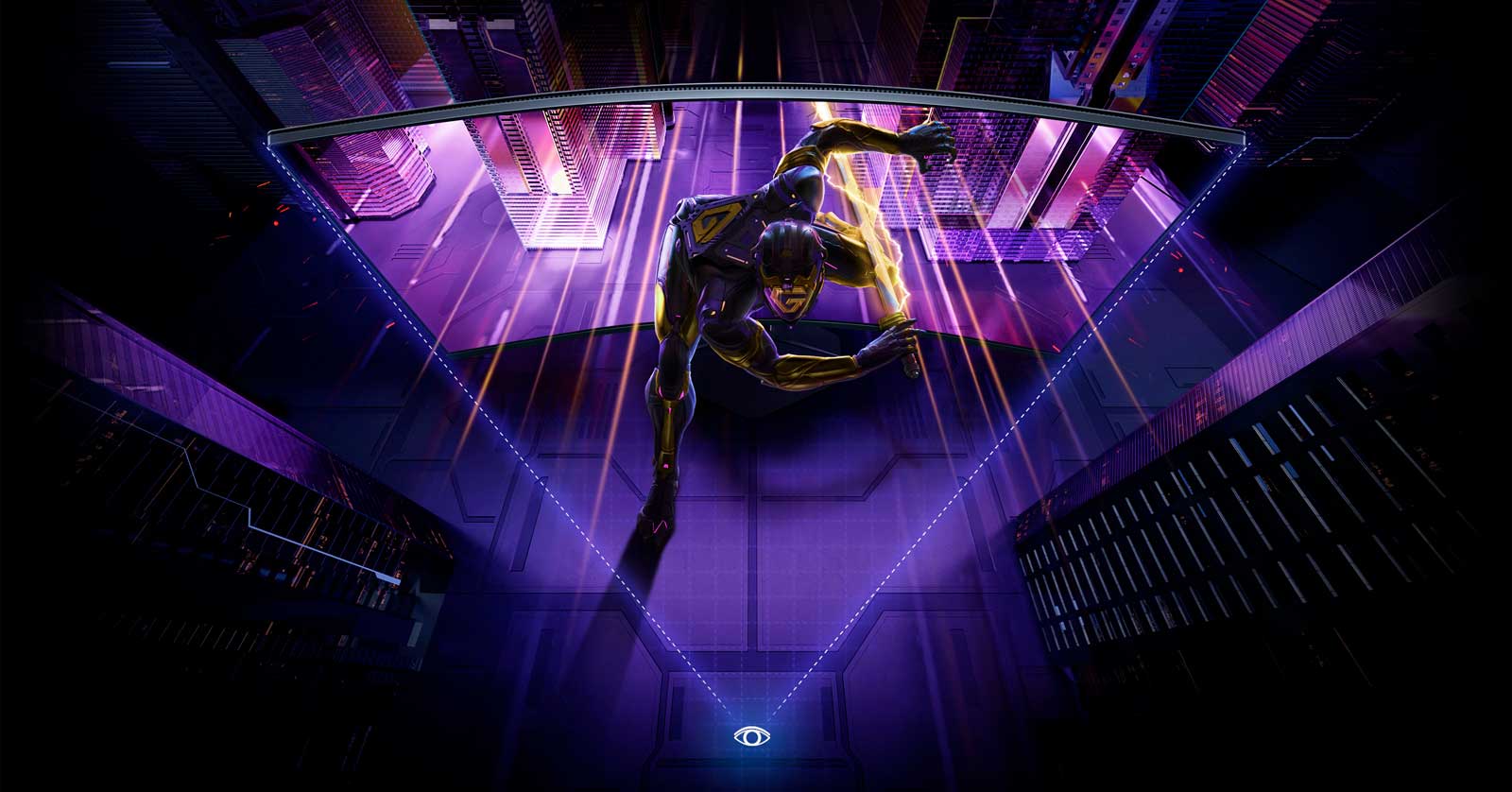 Окажитесь в центре событий с монитором, который словно окружает вас со всех сторон. Такой эффект создается благодаря плавно изогнутому дисплею с радиусом кривизны 1500R, которая повторяет форму человеческого глаза. Изогнутый дизайн