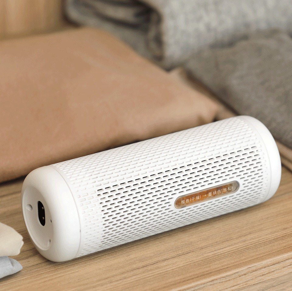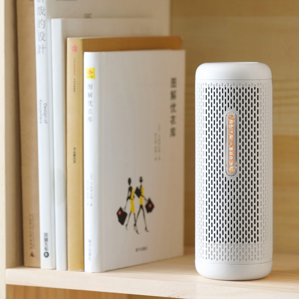Настольный осушитель воздуха Deerma очень компактен. Он имеет продолговатую цилиндрическую конструкцию со специальными отверстиями. Высота устройства всего 206 мм, а диаметр – 75 мм. Благодаря столь компактным габаритам, его достаточно легко разместить практически в любом уголке вашего дома: шкафу, туалете, кухне, кладовке, офисе.