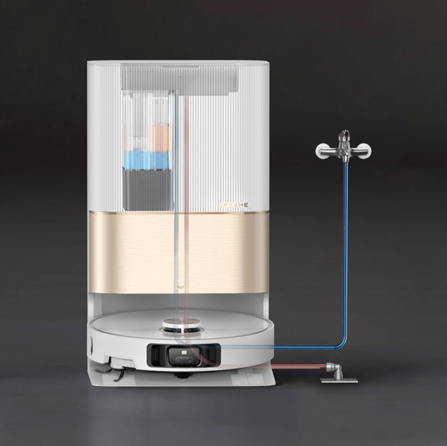 Совместимость с комплектом для подключения к водопроводу позволяет обеспечить практически полную автономность уборки. Робот-пылесос X40 Ultra Complete сливает использованную воду из резервуара, а также автоматически наполняет второй резервуар чистой водой, избавляя вас от необходимости поднимать тяжелые резервуары.