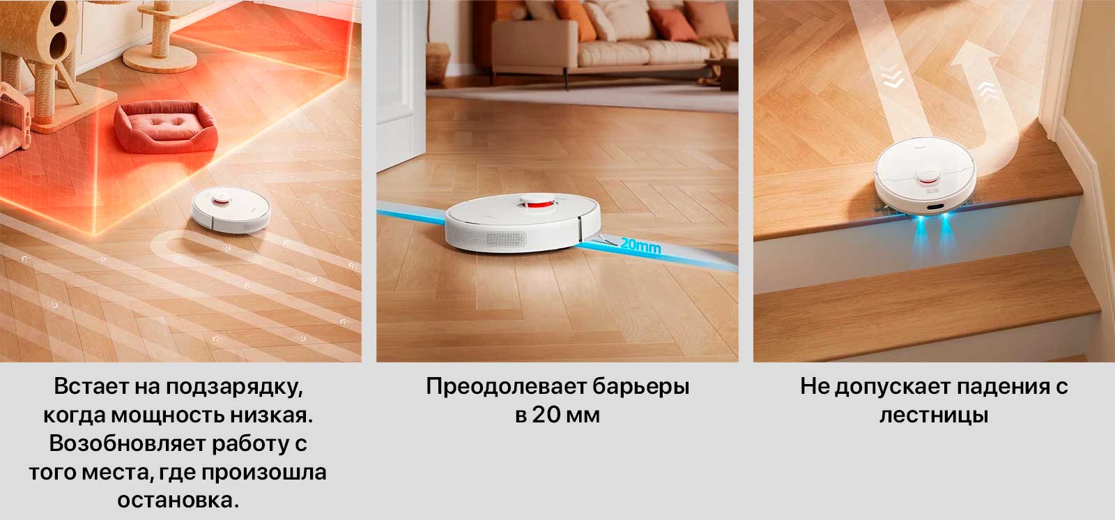 Высокая мощность всасывания, длительное время автономной работы и подсветка темных участков..