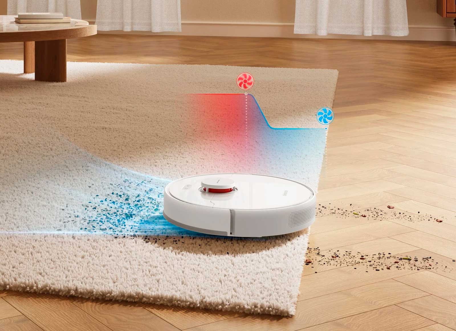 Пылесос автоматически увеличивает мощность всасывания до максимальной при соприкосновении с ковровым покрытием. Он легко перемещается между коврами и полом, редко застревает и собирает большинство мелких частиц
