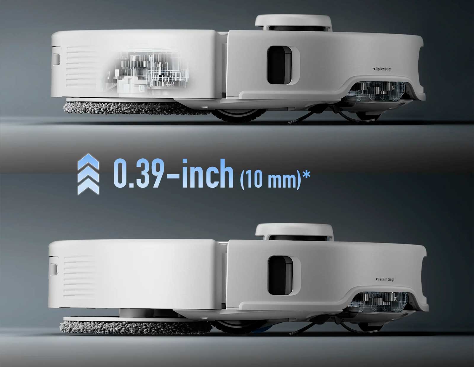 При обнаружении углов боковая щетка с дугой быстро выдвигается, чтобы смести беспорядок и провести тщательную очистку. Выдвижная швабра с правой стороны точно очищает края и динамически подстраивается под углы.
