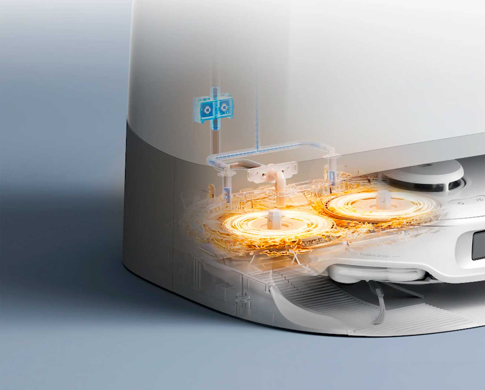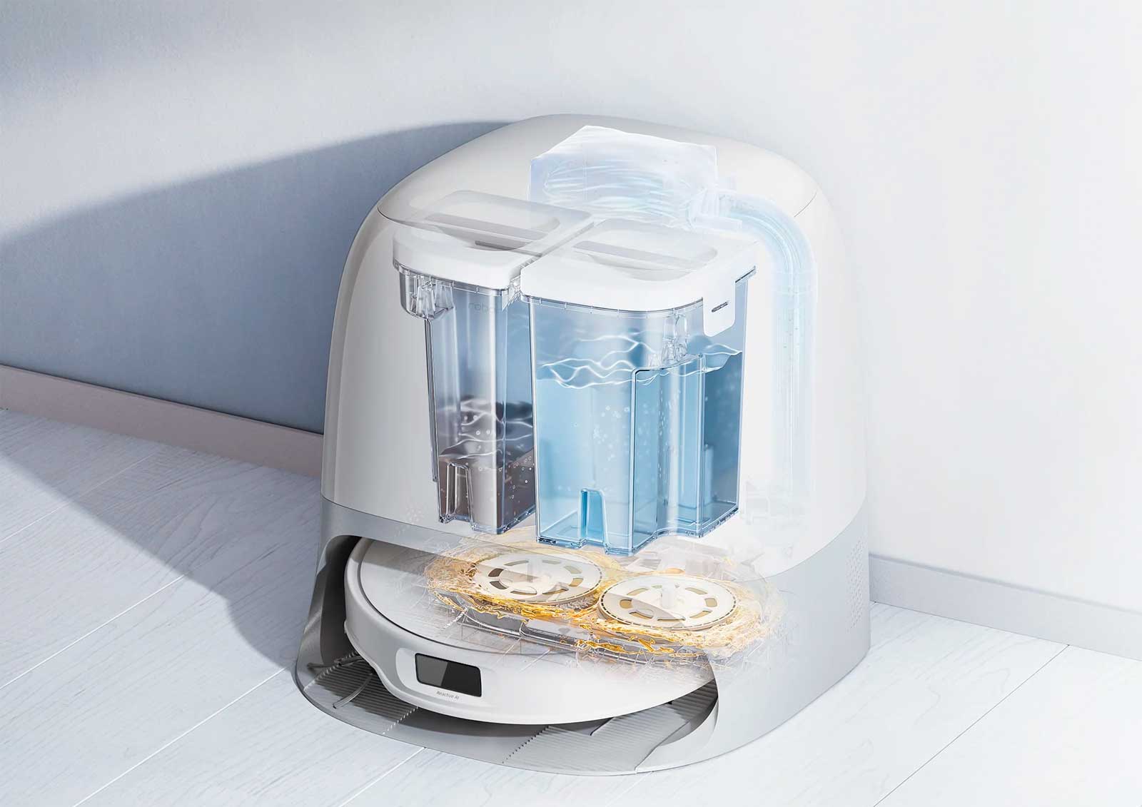Обновленная док-станция оснащена функцией мытья швабры горячей водой при температуре 167 °F (75 °C)* и функцией самоочистки, что обеспечивает улучшенную уборку без помощи рук с улучшенной