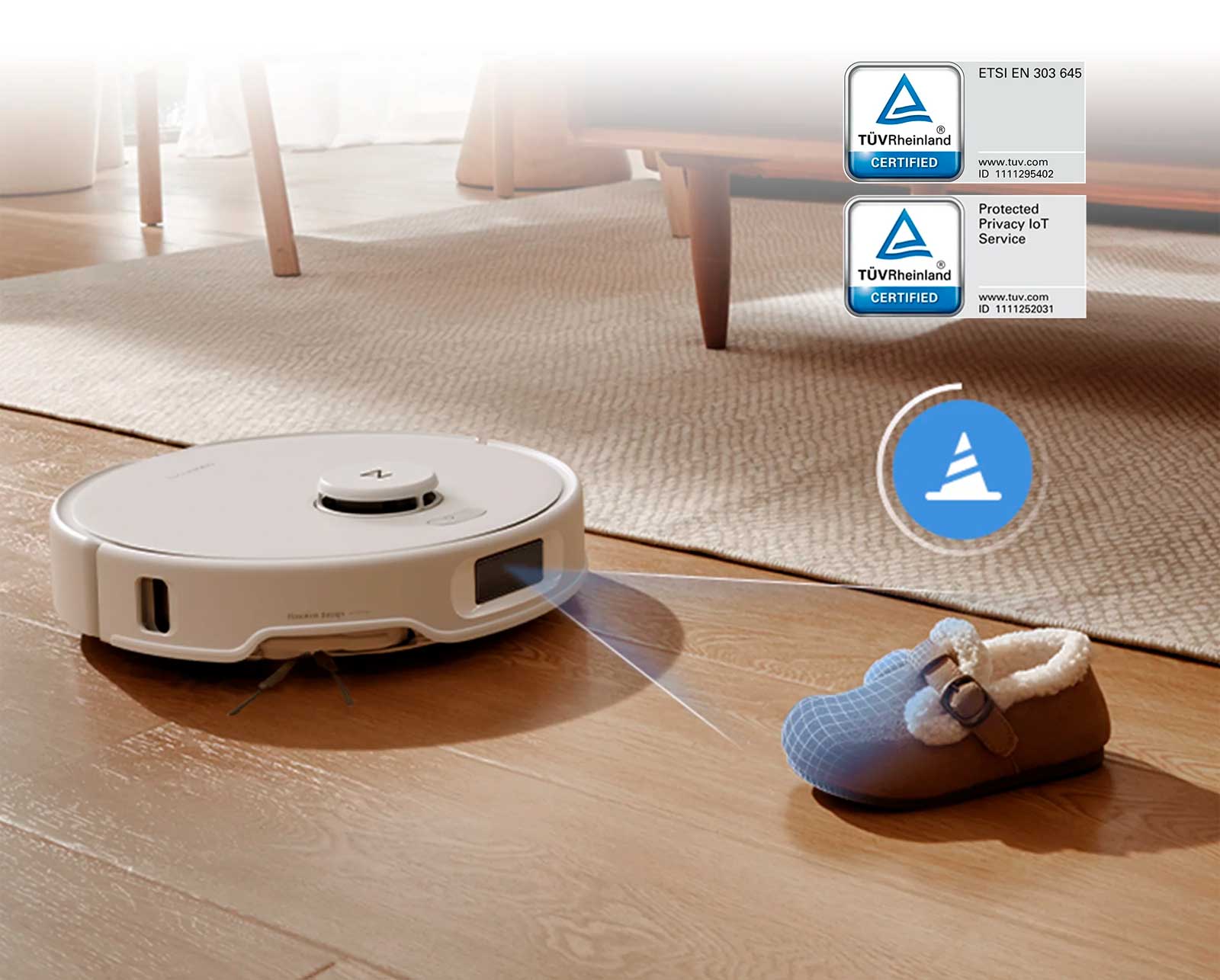 Удобная навигация для ежедневной уборки. Используя структурированный свет для обнаружения распространенных препятствий и удаления от них, робот обеспечивает плавную и беспроблемную уборку даже без необходимости предварительно