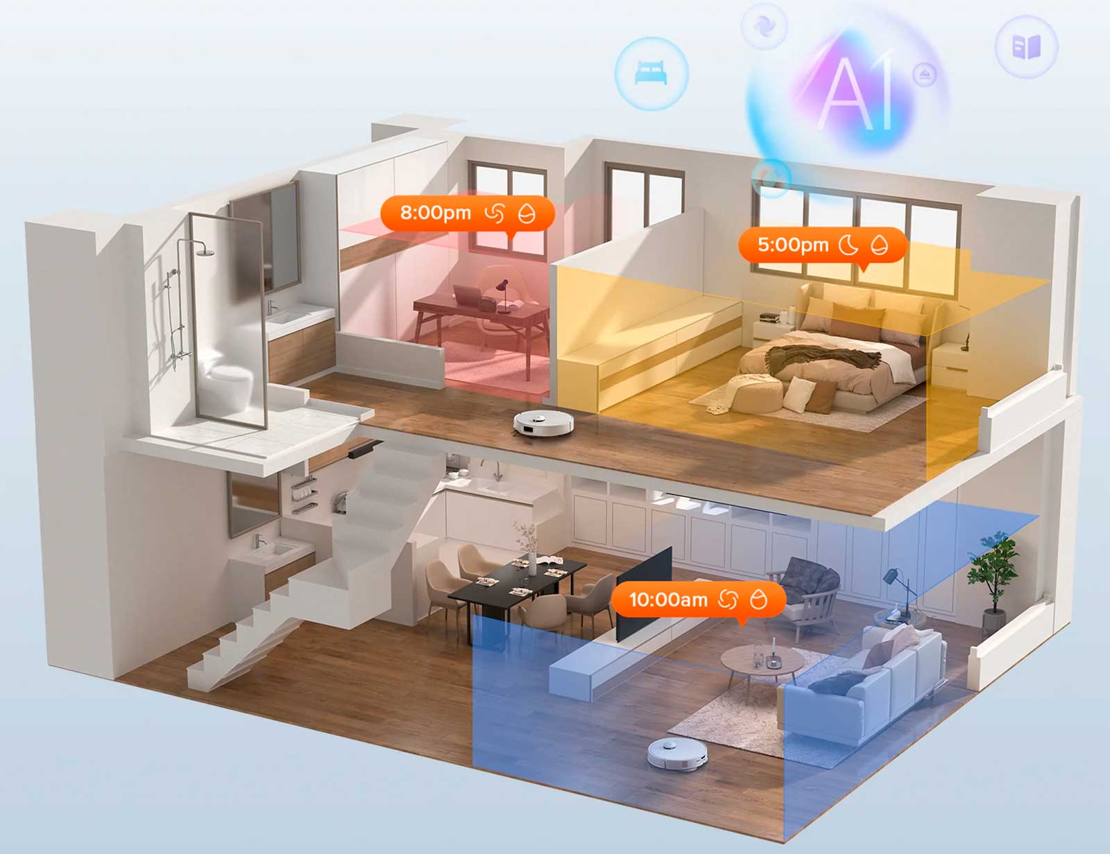 Адаптируя режимы уборки к вашим привычкам, типам помещений и материалам пола, Roborock SmartPlan™ интеллектуально генерирует режимы уборки и автоматически настраивает настройки и