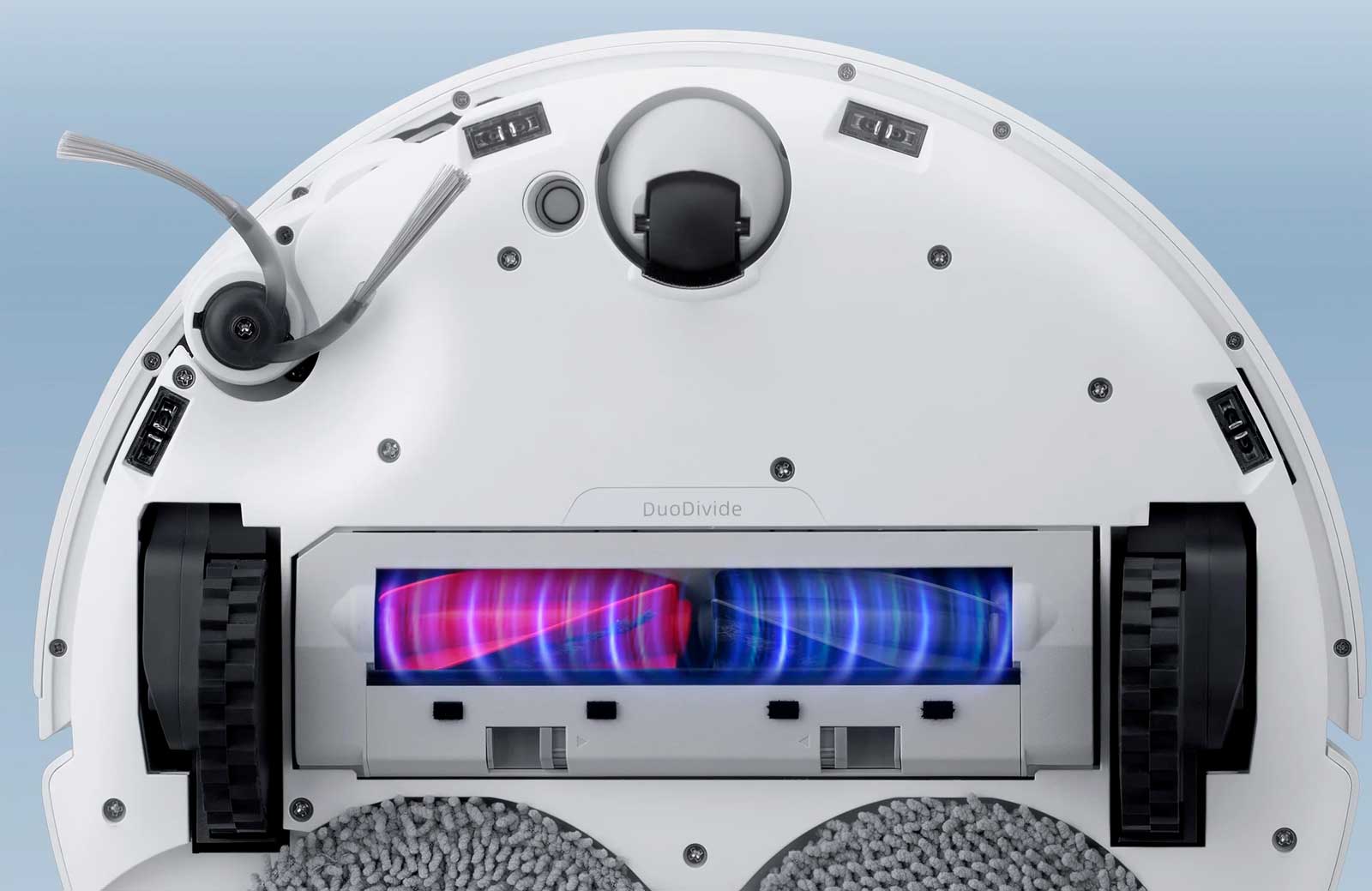 Основная щетка DuoDivide™ и боковая щетка FlexiArm™ Arc для очистки без спутывания. Модернизированное всенаправленное колесо оснащено удобной щеткой рядом с колесом, которая очищает его во время использования, что упрощает
