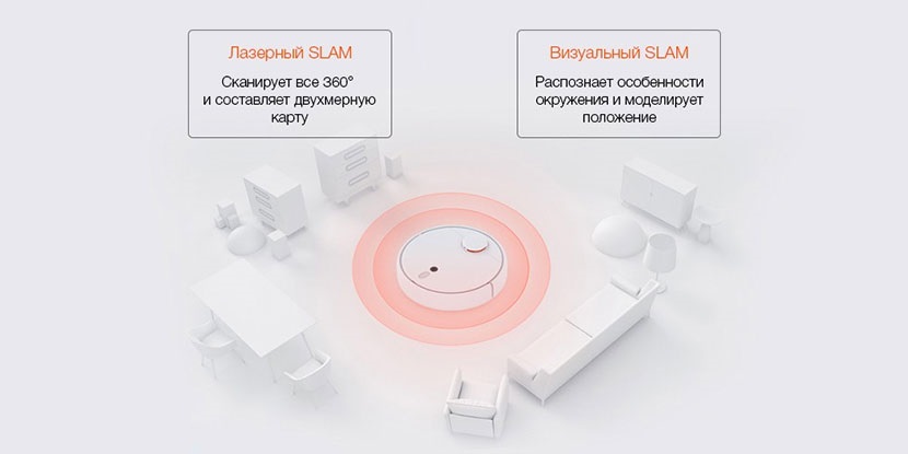 SLAM — Метод одновременной локализации и построения карты. С ним даже если пылесос передвинуть, он сможет продолжить исполнение задачи и быстро определить свое положение.