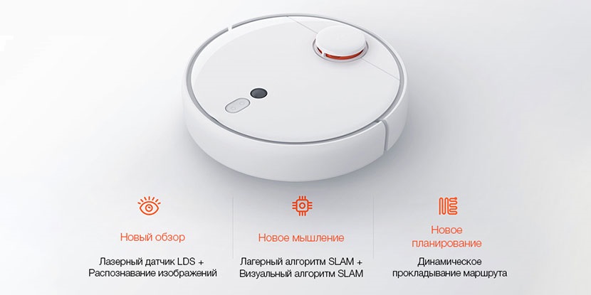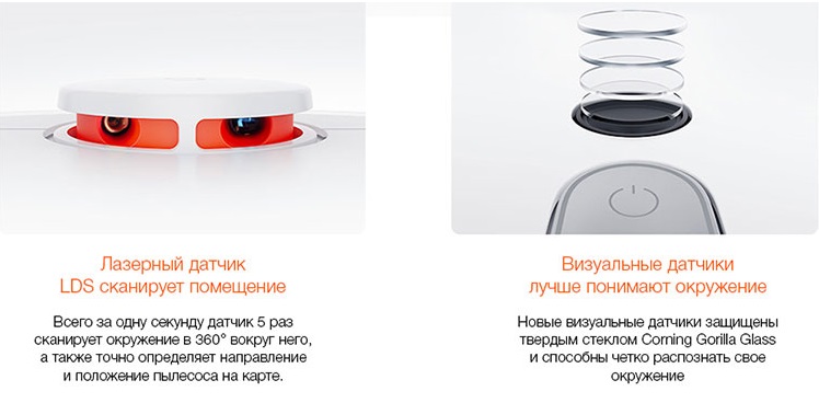 С помощью лазера LDS сканируется помещение, и составляется двухмерная карта, а визуальные датчики улавливают и распознают особенности изображения. На основе собранных данных составляется точная и надёжная карта помещения.