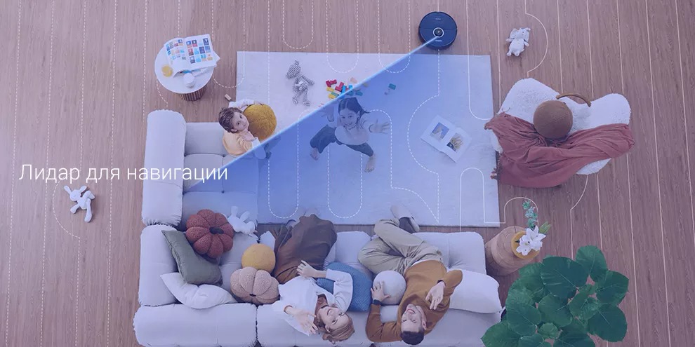 Лидар для навигацииДля эффективной навигации устройство оснащено лидаром. Он помогает выбрать оптимальный маршрут для уборки, не оставляя грязи ни единого шанса.