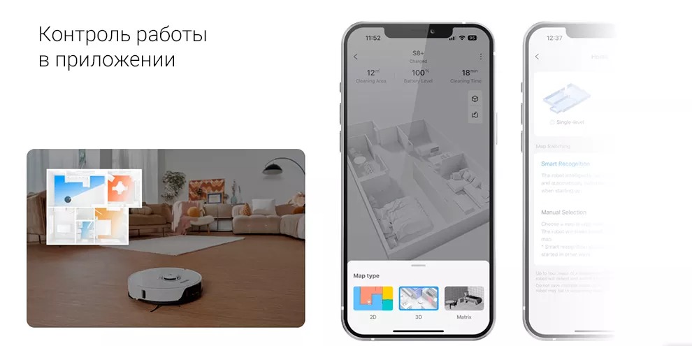 Контроль работы в приложенииНа смартфоне пользователь может устанавливать расписание работы пылесоса, смотреть карту, вносить в нее изменения и многое другое. Контролируйте работу Roborock S8 одним касанием.