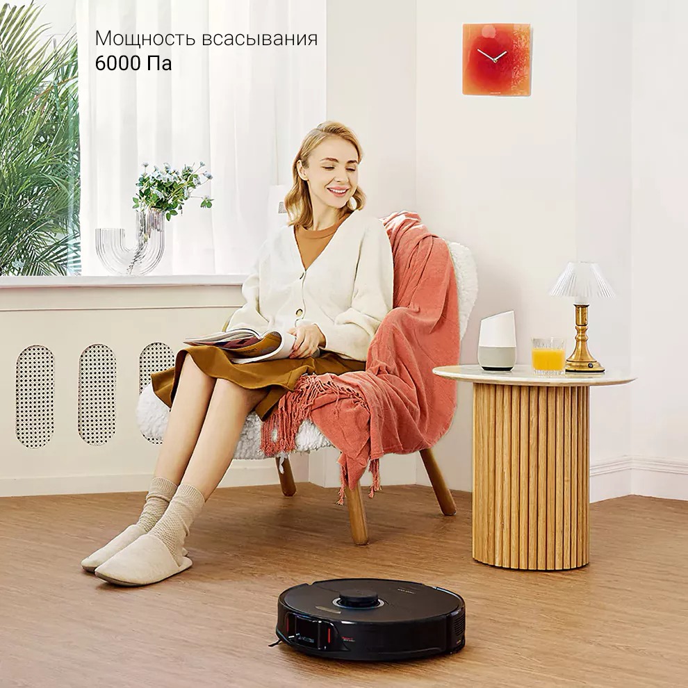6000 Па для глубокой чистки ковровГаджет поддерживает мощность всасывания в 6000 Па. Вместе с системой Roborock Carpet Boost+ гарантируется качественная уборка ковра. Пылесос удаляет шерсть домашних животных и мельчайшие крошки.