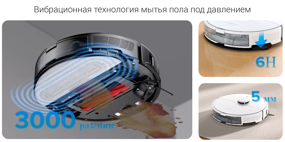 Вибрационная технология мытья пола под давлениемВ отличие от обычных роботов-пылесосов, которые просто протирают пол многоразовой салфеткой, Roborock S8 использует технологии вибрации и давления, поэтому он моет пол гораздо лучше.