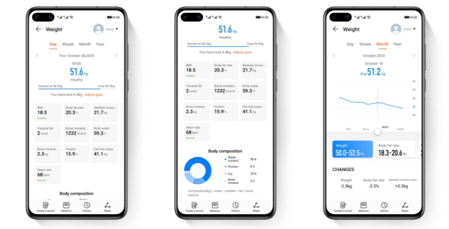 Изучите себя в деталяхБлагодаря HUAWEI Scale 3 вы сможете получить полноценное понимание вашей физической формы с помощью 11 показателей