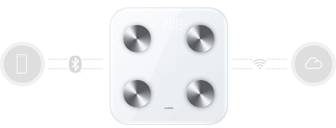 Два типа подключенияПодключайте умные весы HUAWEI Scale 3 по Wi-Fi и Bluetooth, чтобы испытать новый уровень комфорта. При подключении по Wi-Fi вы можете просто встать на весы, не открывая приложение. На основе истории данных весы сами определяют пользователя. Все данные автоматически загружаются в облако и отправляются на соответствующий аккаунт пользователя, чтобы вы могли посмотреть данные на вашем телефоне где угодно и когда угодно.