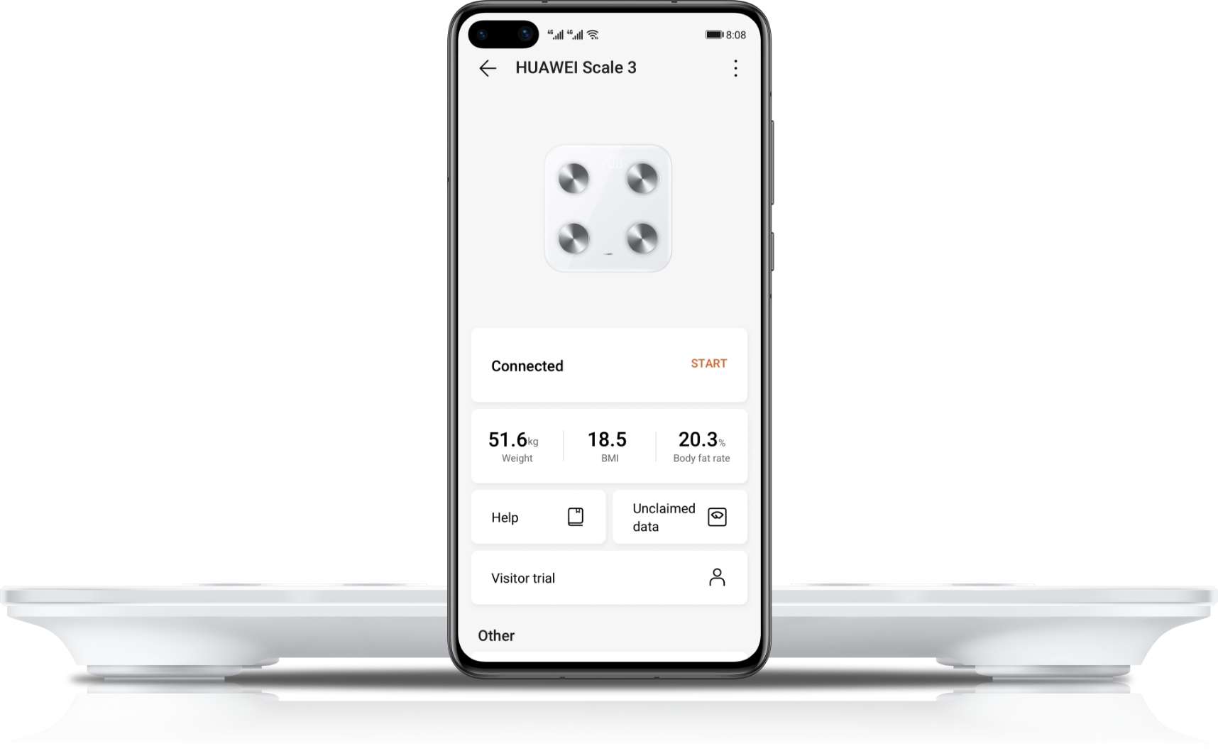 Гостевой режимВаши гости также могут воспользоваться вашими весами. Откройте приложение HUAWEI Здоровье, введите информацию вашего гостя и весы будут готовы к измерениям. Гостевой режим защищает данные гостя, которые будут удалены после измерений.