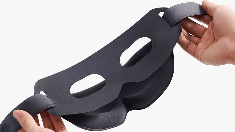 Массажер создан с учетом максимального комфорта. Его трехмерный дизайн плотно прилегает к лицу, полностью исключая свет, а вогнутые зоны под глазами предотвращают давление на чувствительные участки.